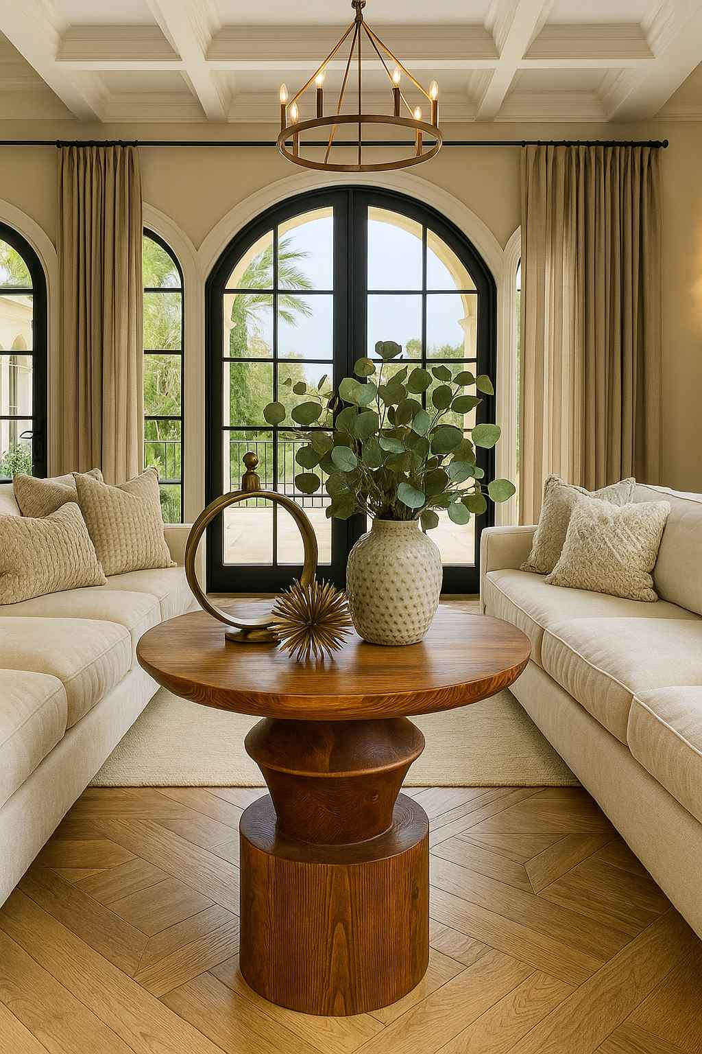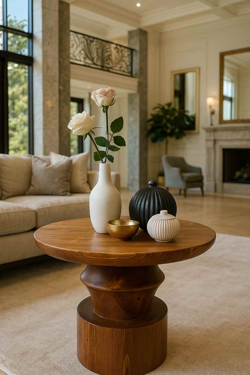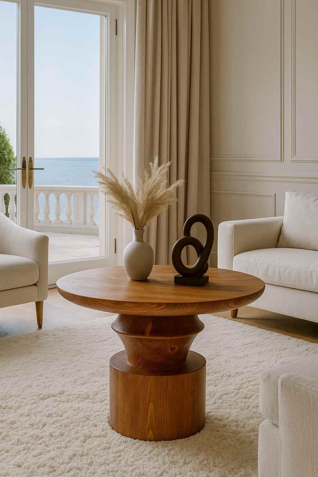Modern ve rustik dekorasyonlara uyum sağlayan bu ahşap orta sehpa, 45 cm yüksekliği ve 55 cm genişliğiyle estetik bir kullanım sunar. El işçiliği yüzeyi doğal sıcaklık katarken dayanıklı ayakları uzun ömürlü kullanım sağlar.