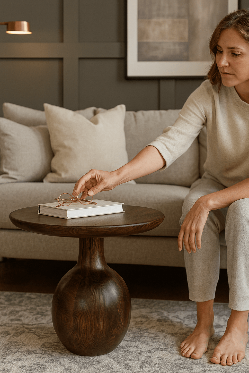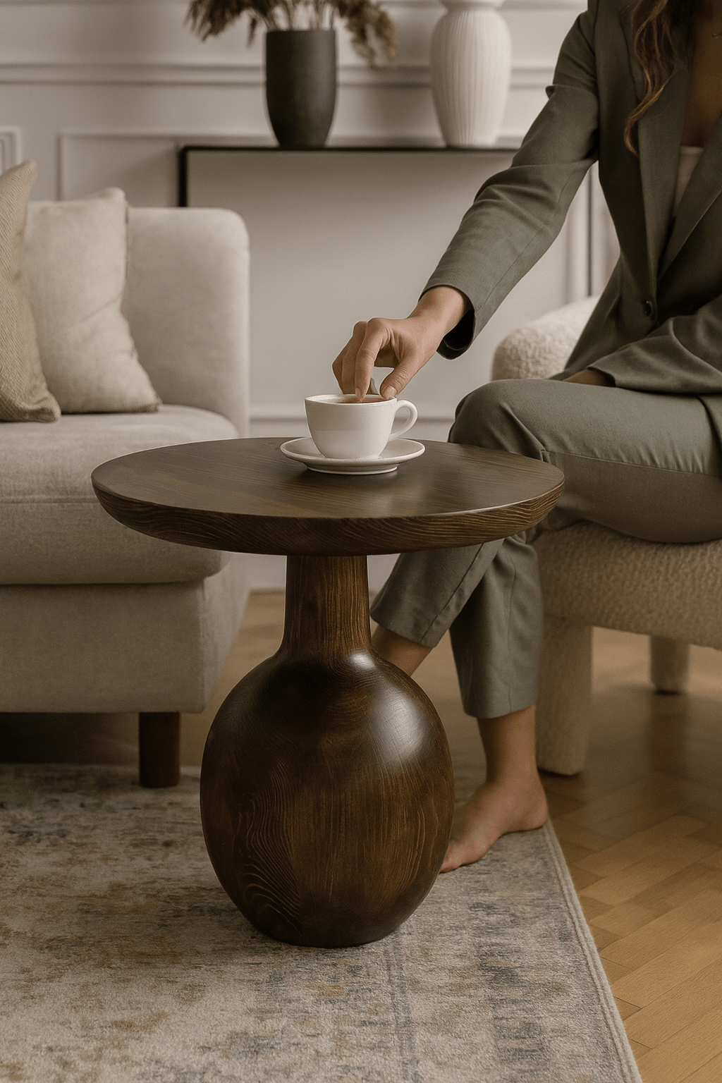 Bu ahşap orta sehpa, 45 cm yüksekliği ve 55 cm genişliğiyle hem estetik hem fonksiyonel bir kullanım sunar. El işçiliğiyle üretilen rustik yüzeyi, doğal ahşabın sıcaklığını yansıtır. Geniş tabla yapısı, kitap, bitki veya dekoratif objeler için ideal bir alan sağlar. Sağlam ayak formu, dengeyi ve dayanıklılığı garanti eder.