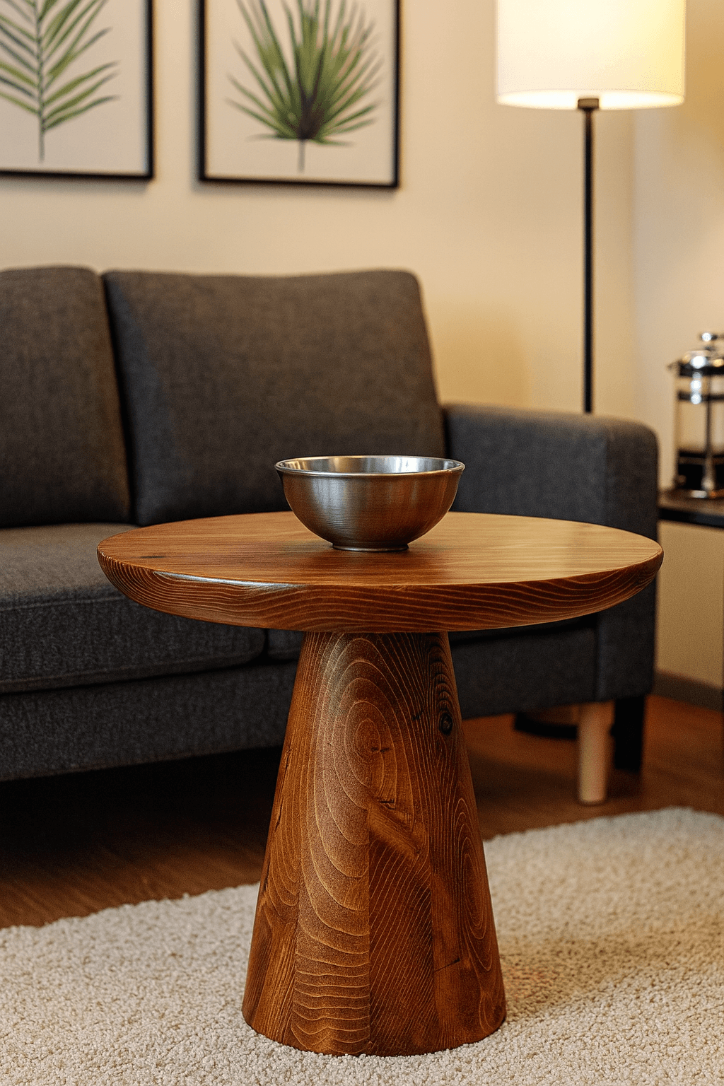 Doğal ve estetik detaylarıyla dikkat çeken bu ahşap orta sehpa, 45 cm yüksekliği ve 55 cm çapıyla mükemmel oranlara sahiptir. Rustik yüzeyi, el işçiliğiyle işlenmiş benzersiz bir doku sunar. Modern ve rustik stillerde uyumla kullanılabilir. Geniş tablası dekoratif objeler için idealdir. Sağlam yapısıyla uzun ömürlü kullanım sağlar. Evinize sıcaklık ve doğallık kazandıran zamansız bir parçadır.