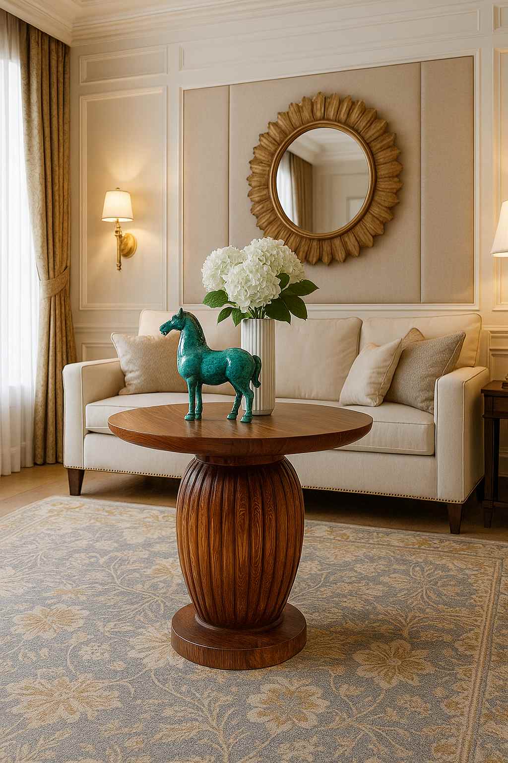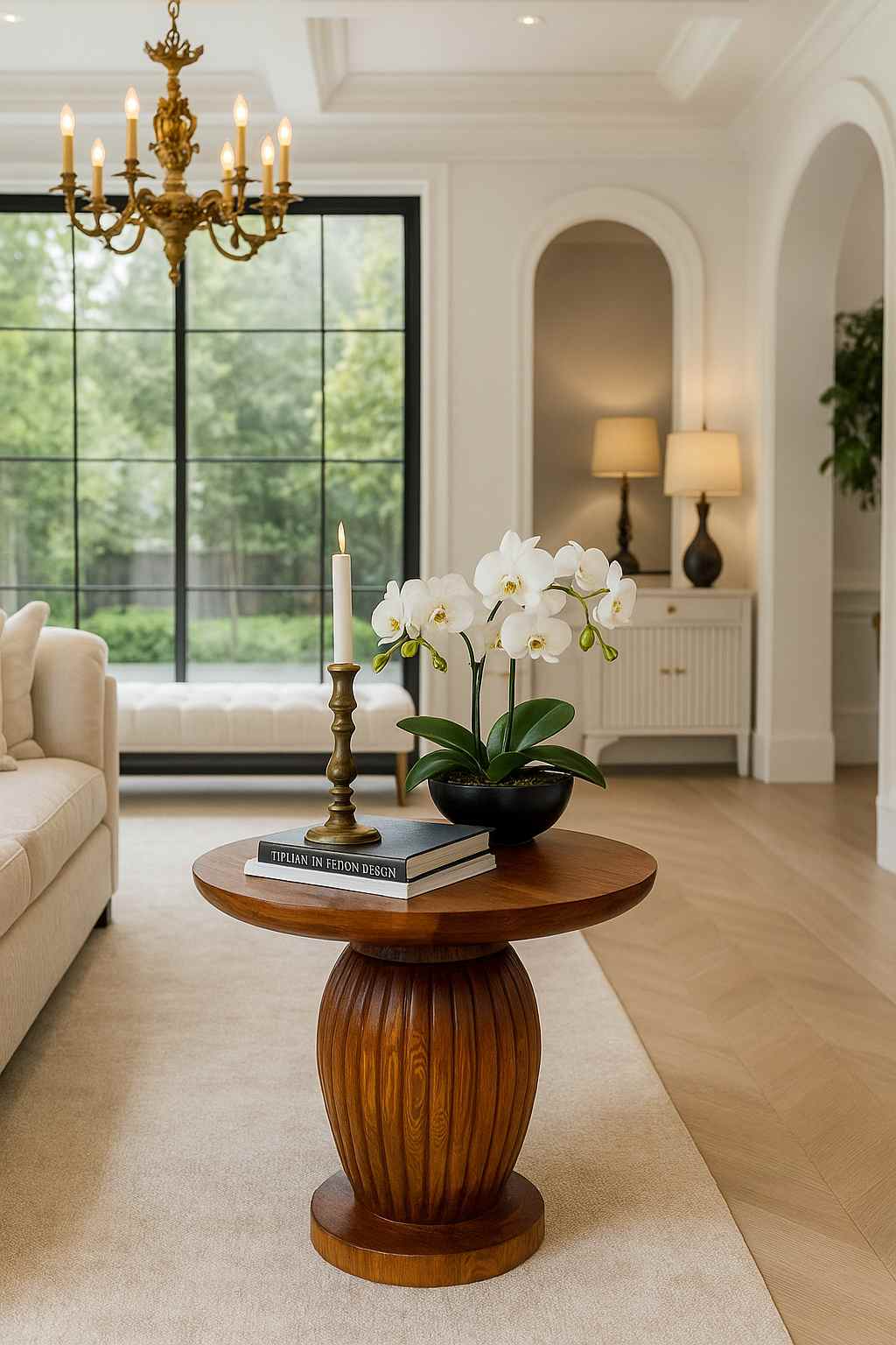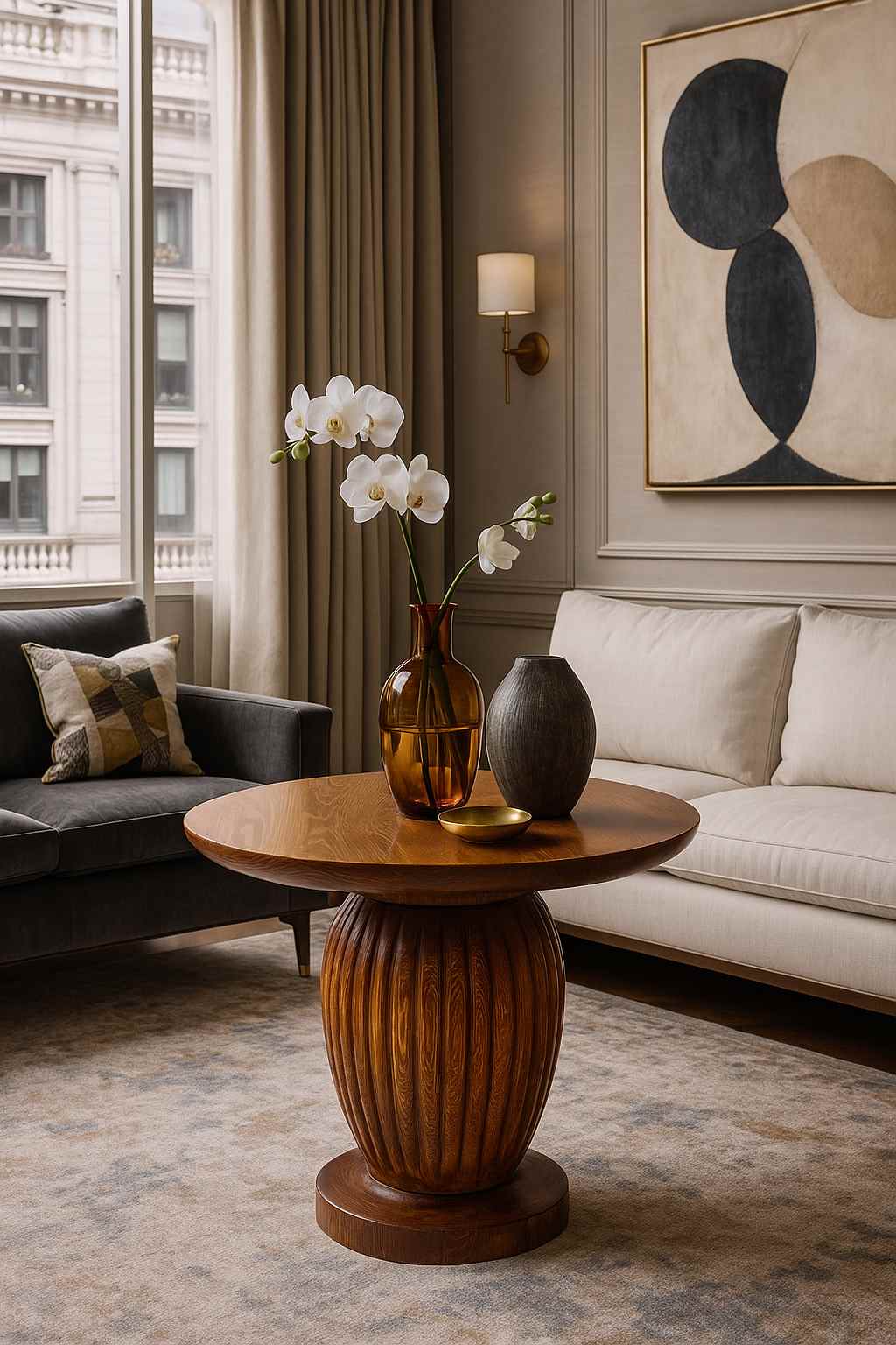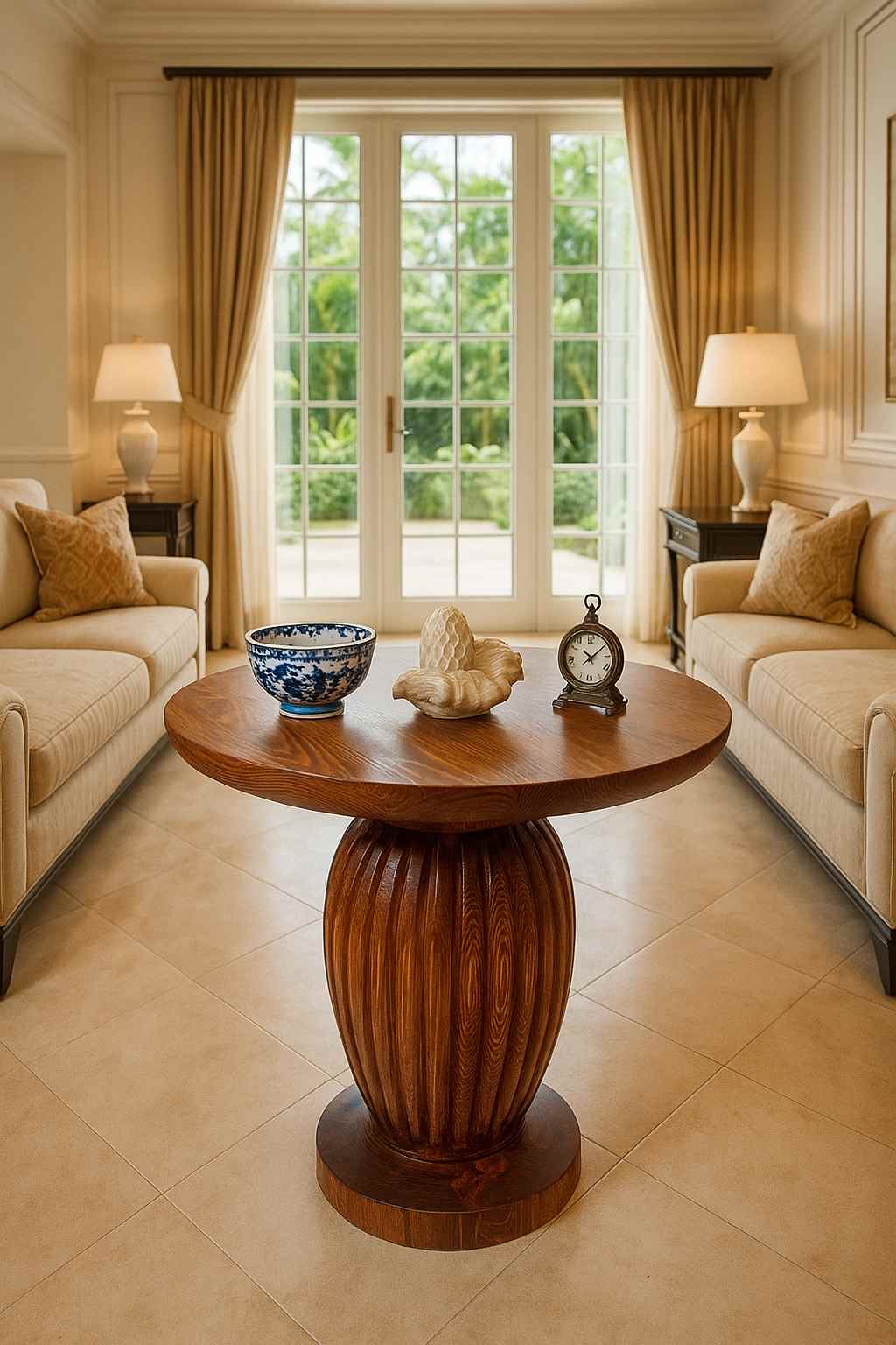 Ahşap dokusuyla sıcak bir atmosfer oluşturan bu orta sehpa, 45×55 cm ölçüleriyle hem şık hem işlevseldir. Geniş tabla kısmı günlük kullanımda avantaj sağlarken sağlam ayakları yapısal bütünlük sunar.