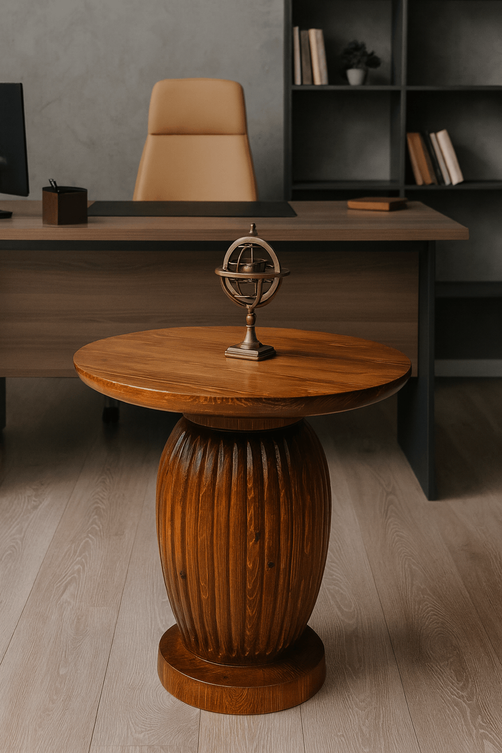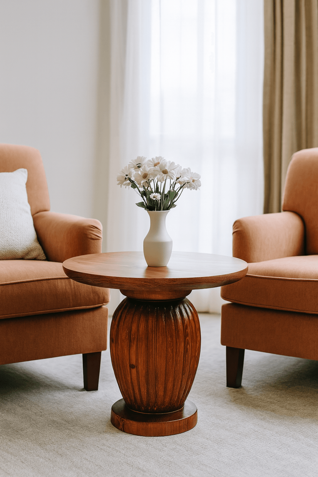 Doğal ahşabın dokusunu hissettiren bu orta sehpa, rustik çizgileriyle salonlara sıcaklık getirir. 45 cm yüksekliği ideal kullanım sağlarken, 55 cm tabla genişliğiyle dekoratif objelerinizi sergilemek için mükemmel bir yüzey sunar. Modern ve klasik tarzları uyumla buluşturan bir tasarımdır.