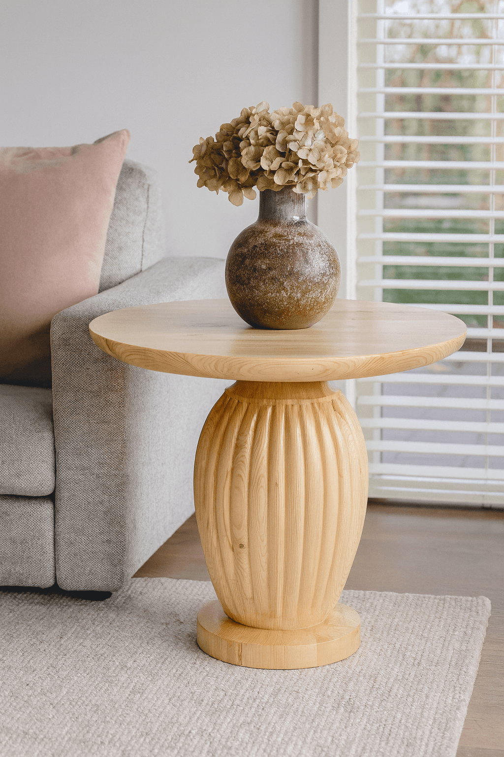 Zarif tasarımıyla dikkat çeken bu ahşap orta sehpa, 45 cm yüksekliği ve 55 cm genişliğiyle oturma alanlarında konforlu bir kullanım sağlar. El işçiliğiyle üretilen rustik yüzeyi her bir üründe farklı doku ve tonlar yaratır. Evinizin merkezine sıcak bir karakter kazandırır.